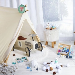 Zahvaljujući gumiranim kotačima vožnja je tiha i na tvrdim podlogama, pa je guralica prikladna i za stan i za nogostup. Retro dizajn istaknut će se u svakoj dječjoj sobi te poticati maštu i radost kretanja.