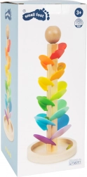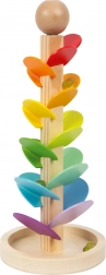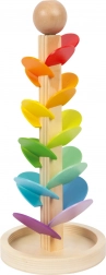 Drvena kuglična staza Small Foot pretvara svako spuštanje kuglice u mali koncert. Dok staklena kuglica klizi po šarenim listićima, nastaju postupno viši pa niži tonovi koji potiču slušnu percepciju i djeci pružaju umirujuće i zabavno iskustvo. Robusna drvena konstrukcija sa stabilnom bazom i glatkom površinom ugodna je na dodir i spremna za svakodnevnu igru.