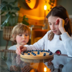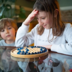 Zahvaljujući kvalitetnoj izradi od održivih materijala, igra je izdržljiva i ugodna na dodir. Odlična je za tihu igru, razvoj koncentracije i planiranja koraka – a ujedno lijepo izgleda u dječjoj sobi ili dnevnom boravku.