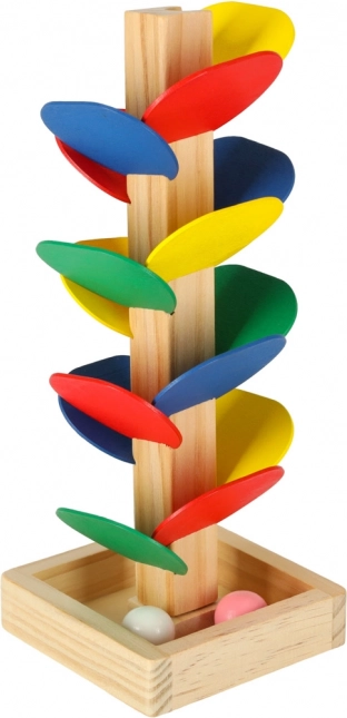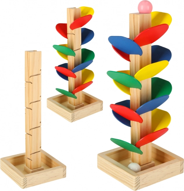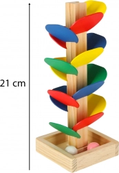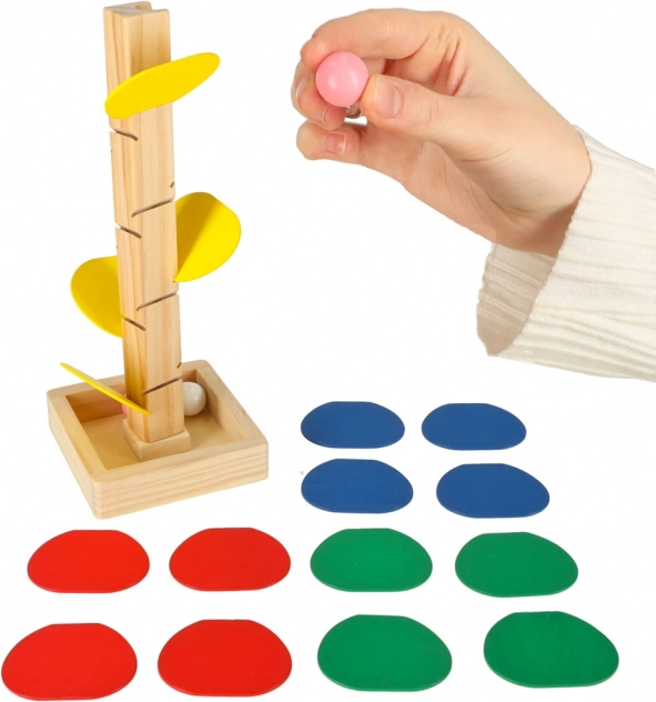 Djeca spuste kuglicu s vrha, a ona se po pojedinačnim šarenim 'listovima' zavrti i sklizne sve do postolja. Svaki dodir stvara ugodan zvuk i motivira na nova isprobavanja. Igra prirodno razvija finu motoriku, koordinaciju oko–ruka, strpljenje te percepciju boja i uzročno–posljedičnih veza.