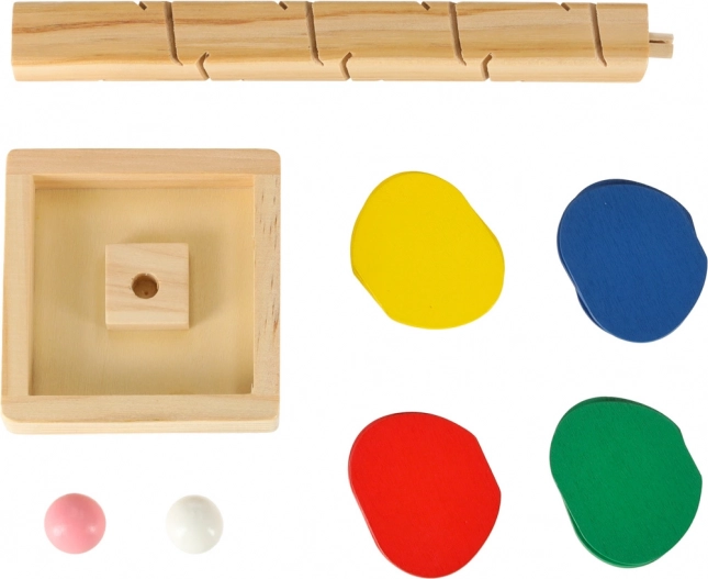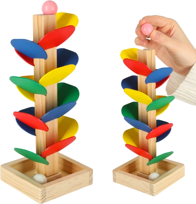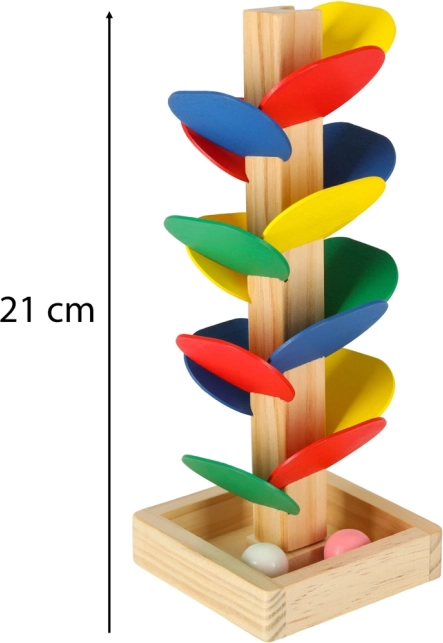 Otkrijte drveno kugličasto stablo MONTESSORI – razigrano pomagalo koje djecu potiče na otkrivanje boja, zvukova i fizike. Spustite kuglicu s vrha i promatrajte kako niz šarene listove klizi prema dolje, pritom razvijajući finu motoriku i koordinaciju oko–ruka. Izrađeno od prirodnog drva, kompaktna visina 21 cm i sjajan poklon za znatiželjnu djecu.