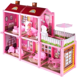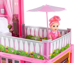 Čarobna ružičasta kućica za lutke visine 44 cm razveselit će svako dijete bogatom opremom i detaljnom izradom. U kompletu je lutka 10 cm s pomičnim udovima, namještaj za spavaću sobu i dnevni boravak te balkon s parasolom. Kućica je od kvalitetne plastike i nudi laku montažu te mnoštvo mogućnosti za kreativnu igru.