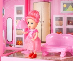 Ružičasta kućica za lutke s lutkom i namještajem (44 cm)
