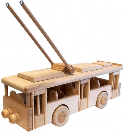Trolejbus je izrađen od kvalitetnog tvrdog bukovog drva s glatkom površinom i zaobljenim rubovima za sigurno igranje.