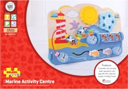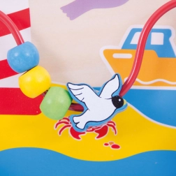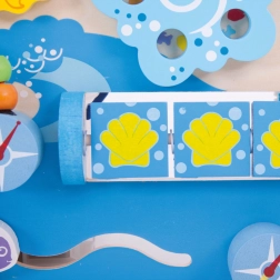 Ova drvena aktivna ploča s nautičkim motivom donosi djeci raznoliku paletu aktivnosti: okretni labirint, rotirajuće morske konjiće, pomične ribice i žičani labirint s galebovima. Svaki je element osmišljen tako da podupire prirodan razvoj vještina, strpljenja i koncentracije. Zahvaljujući podesivim nosačima ploču je moguće sigurno pričvrstiti i na krevetić kako bi beba imala poticajnu zabavu nadohvat ruke.