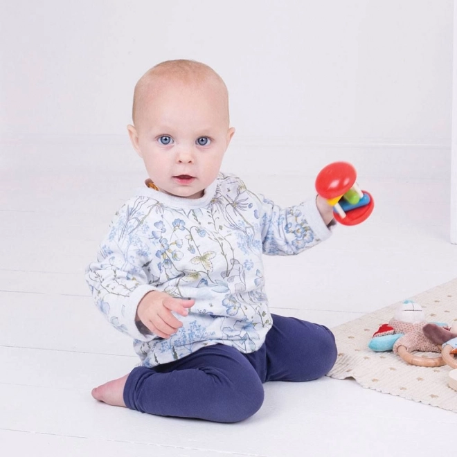 Dugin valjak Bigjigs Baby bezvremensko je drveno zvečkalo koje oduševljava živim bojama i ugodnim zvukom. Tri obojena bloka pri kotrljanju ili tresenju njišu se i nježno udaraju o prečke, motivirajući dijete na daljnje istraživanje, hvatanje i kretanje.