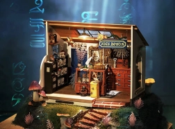 Udahnite život simpatičnoj trgovini vještice Kiki i uživajte u satima stvaranja. Model u mjerilu 1:20 donosi realistične scene s pultom, policama i tajanstvenim artefaktima. Zahvaljujući LED rasvjeti diorama nakon sumraka dobiva jedinstvenu atmosferu i postaje središte pozornosti u vašem interijeru.