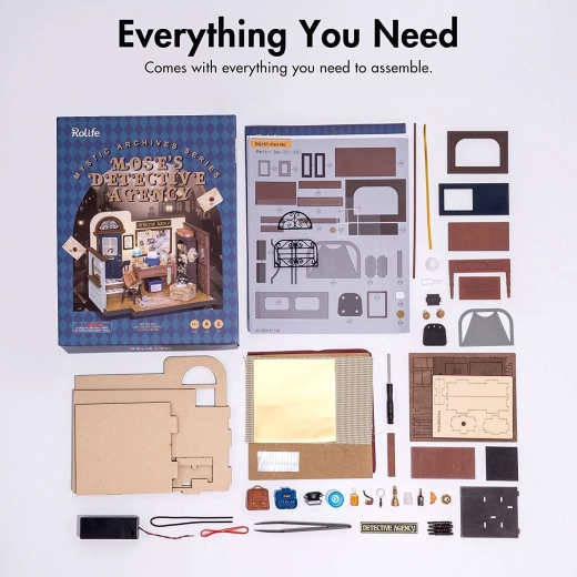 Izradite vlastitu minijaturu detektivskog ureda u britanskom stilu iz serije ROBOTIME ROLIFE Mystic Archives. Ovaj detaljan DIY set nudi LED osvjetljenje, mnoštvo realističnih dodataka i jednostavniju montažu zahvaljujući većem udjelu gotovih dijelova. Idealno kao poklon, kreativno opuštanje i stylish dekoracija za interijer.