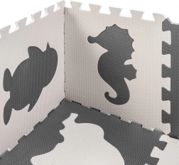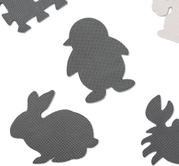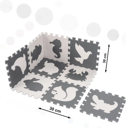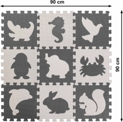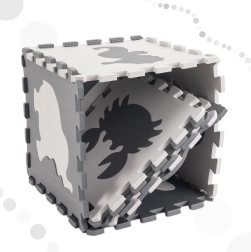 Stvorite za svoje dijete sigurno i poticajno mjesto za igru. Ova EVA pjenasta podloga sastoji se od 9 međusobno povezivih dijelova s izvadivim oblicima životinja te nudi mekanu i amortizirajuću površinu, protukliznu obradu i vodootpornost. Neutralna sivo‑ecru paleta savršeno će se uklopiti u svaki interijer.
