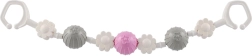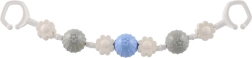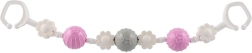 Ova univerzalna prečka za kolica kombinira rotirajuće kuglice i cvjetne oblike koji potiču razvoj fine motorike, vida i sluha. Različite površine i boje bude znatiželju, dok nenametljivo zveckanje umiruje bebu i zabavlja je tijekom šetnje.