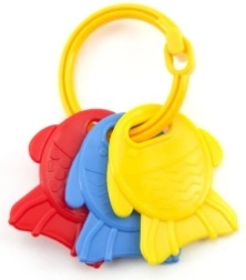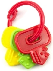 Lagana i lako uhvatljiva zvečka u obliku ključeva idealna je za najmanje ručice. Tri plastična privjeska stvaraju ugodan zveckav zvuk koji privlači pažnju bebe i pomaže u razvoju njezinih osjetila. Izdržljiva izrada prikladna je za svakodnevnu igru kod kuće i na putu.