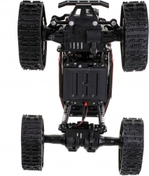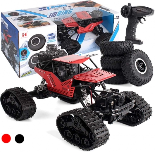Uživajte u dinamičnoj vožnji s RC rock crawlerom 1:16, dizajniranim za zahtjevan teren. Robusna konstrukcija, kvalitetni amortizeri i mogućnost izbora između gumenih kotača i gumenih gusjenica jamče zabavu na svakoj podlozi – od vrta do kamenitih staza.