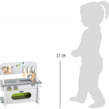 Kuhinjjica je izrađena od 100% FSC drva, pa igrom podupirete održivo gospodarenje šumama. Elegantan dizajn u neutralnim bojama uklapa se u svaki interijer, a zahvaljujući jednostavnoj montaži lako ju je premjestiti ili pospremiti.