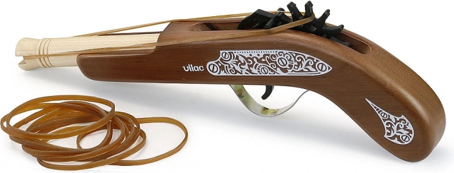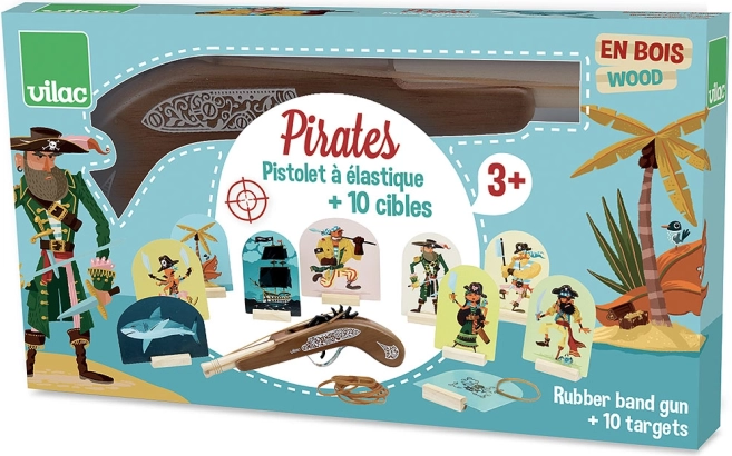 Drvena gusarska pištolj marke Vilac idealna je igračka za male zaljubljenike u gusarske avanture. Omogućuje djeci da treniraju gađanje ciljeva pomoću sigurnih gumica koje su dio pakiranja.