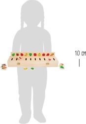 Ova kvalitetna drvena motorička slagalica Small Foot izvrstan je izbor za razvoj dječje fine motorike, logike i rječnika. Djeca pridružuju kvadratne dijelove s motivima odgovarajućim otvorima na umetljivim pločama i kroz igru uče prepoznavati boje, oblike i predmete svakodnevnog života.
