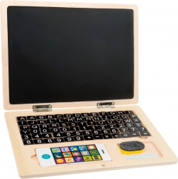 Ovaj drveni laptop nudi interaktivno i edukativno iskustvo za djecu. Opremljen je pomičnim dijelovima sa slovima, brojevima i znakovima, koje se lako mogu premjestiti na magnetsku ploču za kreiranje različitih riječi ili rješavanje matematičkih zadataka. Osim toga, tu je i kredni dio gdje djeca mogu crtati i pisati, a jednostavnim brisanjem spužvom sve lako ukloniti.