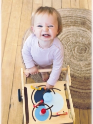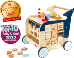 Krenite u istraživanje s drvenom hodalicom u obliku kita. Ova hodalica ne samo da pomaže djeci s prvim koracima, nego također nudi razne interaktivne igračke, koje potiču razvoj motorike.