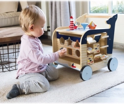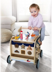 • Morski svijet: Hodalica je inspirirana svijetom pomorstva i sadrži aktivnosti poput umetanja oblika, okretanja slika i ploču za crtanje.