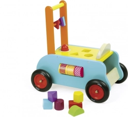 Ova multifunkcionalna drvena guralica 3-u-1 izvrstan je pratitelj za djecu od 12 mjeseci. Kao hodalica pomaže pri prvim koracima, kao odrážalo jača stabilnost i koordinaciju, a kao umetaljka potiče logičko razmišljanje i finu motoriku. Robusna drvena konstrukcija i veliki gumirani kotači osiguravaju sigurnost i glatku vožnju u domu i na glatkim podlogama.