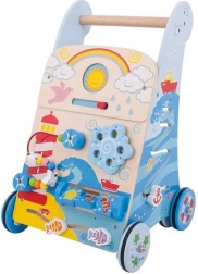 Pružite svom djetetu zabavan način učenja hodanja i istodobnog unaprjeđenja motoričkih vještina. Ovo guralo opremljeno je raznolikim aktivnostima, uključujući klizače, okretne kockice i žičanu stazu s perlicama, što pruža sate zabave. Na bočnim stranama guralice nalaze se i blok-kotur te sortirka oblika, gdje djeca mogu vježbati finu motoriku.