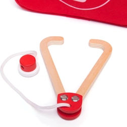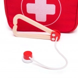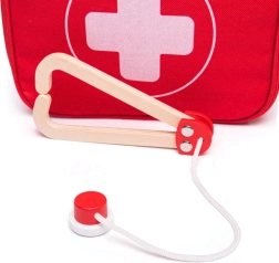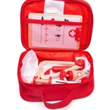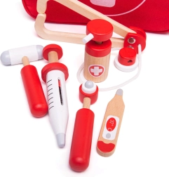 Prijenosni doktorski kovčežić za male liječnike sadrži 10 pažljivo izrađenih alata od drva i tekstila. Podržava kreativnu i maštovitu igru, uči brizi i empatiji, a zahvaljujući praktičnoj torbi s patentnim zatvaračem idealan je i za putovanja. Proizvedeno od kvalitetnih i sigurnih materijala, prikladno od 3 godine naviše.