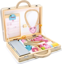 Drveni liječnički set za djecu idealan je za male doktore koji žele otkrivati svijet medicine. Ovaj opsežan set nudi 16 dijelova, pažljivo organiziranih u praktičnom kovčegu, što omogućuje jednostavan pristup i skladištenje. Djeca mogu sama otvoriti kovčeg i po završetku igre sve lako složiti natrag. Ova igračka ne samo da pruža djeci beskrajnu zabavu, već također razvija njihovu finu motoriku i potiče kreativnost.