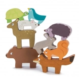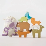 Ova drvena slagalica šumskih životinja iz kolekcije PETILOU osmišljena je za male istraživače. Djeca mogu slagati lisicu, zeca, ježa, medvjeda, miša, kornjaču, vjevericu, lane i ptičicu u zabavnu kulu, vježbati ravnotežu i otkrivati kako kula raste – i ponekad se uz osmijeh sruši. Zahvaljujući ugodnoj veličini, figurice savršeno pristaju u dječje ručice.