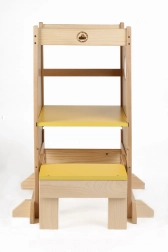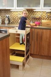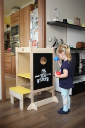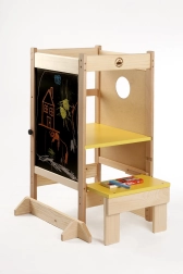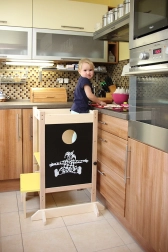 Ova robusna učna kula praktičan je pomagač za svako kućanstvo s malom djecom. Omogućuje djeci da budu u razini radne ploče, bolje vide što radite i sigurno se uključe u kuhanje, pečenje ili kreativne aktivnosti. Izdržljiva drvena konstrukcija od bukovine i jelovine osigurava stabilnost i dug vijek trajanja.