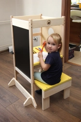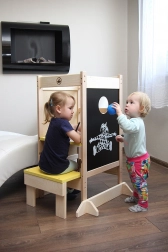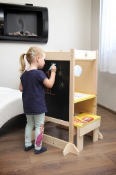 Zahvaljujući promišljenom dizajnu, kulu lako pretvorite u stolić sa stolicom te u ploču za crtanje kredama. Dvije visinske pozicije stajaće površine prilagođavaju se rastu djeteta i pružaju udobnu i sigurnu upotrebu.