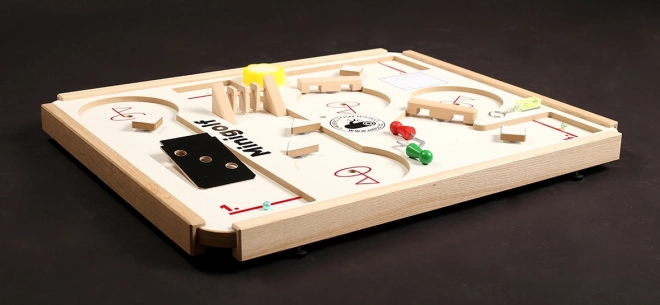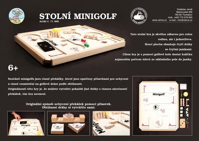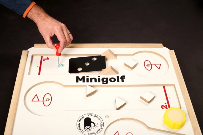 Stolni mini golf donosi originalnu zabavu za djecu i odrasle. Četiri staze s preprekama na prijanjajuće čašice omogućuju slobodno raspoređivanje i beskonačno mnogo kombinacija. Svaka je igra drugačija, vježba opažanje, strpljenje i finu motoriku. Zahvaljujući robusnim materijalima idealan je za često igranje kod kuće i u školama.