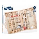 Praktičan i robustan kovčeg s alatom Deluxe od small foot idealan je za djecu koja rado otkrivaju svijet popravaka i stvaranja. Svi alati imaju svoja predviđena mjesta i učvršćeni su kako bi ostali na mjestu i tijekom prenošenja. Kvalitetna izrada od drva, metala i plastike osigurava dug vijek trajanja i autentičan osjećaj rada s alatom.