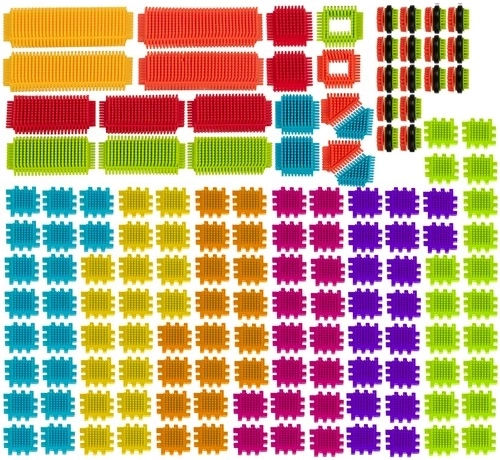 Ovaj raznobojni set s ježastom teksturom omogućuje djeci stvaranje beskonačnog broja konstrukcija – od kućica i vozila do fantastičnih dvoraca. Dijelovi imaju zaobljene krajeve za sigurnu igru od 3. godine te se lako spajaju i odvajaju.