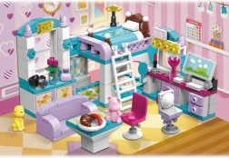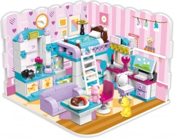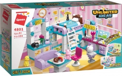 Set za slaganje QMAN Djevojačka soba 3u1 donosi djeci beskrajne mogućnosti građenja i priča. Iz jednog seta možete izraditi kompletnu sobu s krevetom na kat, radnim stolom i dekoracijama ili je preurediti u ugodan dnevni boravak ili blagovaonicu. Živopisne boje i detaljni dodaci inspiriraju na dugu, kreativnu igru.