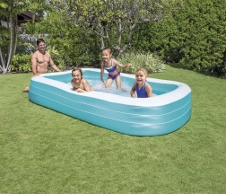 Osigurajte si sjajnu ljetnu zabavu s nafukajućim bazenom INTEX Swim Center. Ovaj prostrani i jednostavan za korištenje bazen namijenjen je za vanjsku uporabu i svojim dimenzijama 305 x 183 x 56 cm nudi dovoljno prostora za cijelu obitelj.