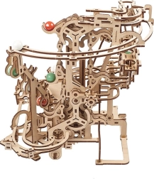 Ova sofisticirana staza za kuglice od kvalitetne šperploče nudi kombinaciju modelarske zabave, edukativne vrijednosti i opuštajućeg prizora. Ručni lančani lift glatko dovodi kuglice na start, odakle kreću kroz tri odvojena segmenta, svaki s jedinstvenom glavnom preprekom. Otvoreni dizajn naglašava funkcionalnu mehaniku i fine detalje.