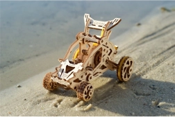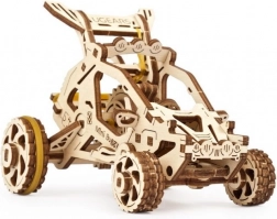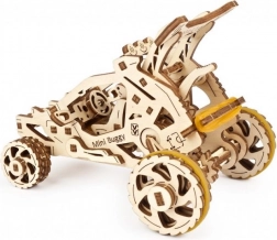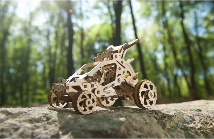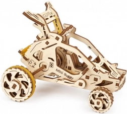 Mini buggy UGEARS zabavna je i pametna mehanička građevna slagalica od prirodnog drva koja spaja tradicionalni materijal i moderno inženjerstvo. Zahvaljujući precizno izrezanim dijelovima odlično se uklapa, a nakon sastavljanja prikazuje gladak pokret kotača i zupčanika.