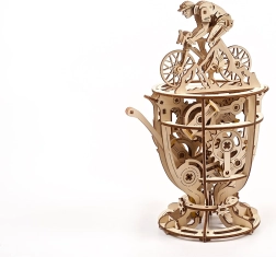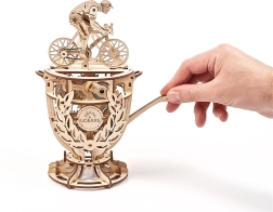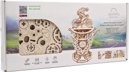 Mehanički model UGEARS Biciklist spaja tradicionalno drvo i pametnu mehaniku. Gradbeni set u obliku trofeja s biciklistom nudi gladak rad zupčanika, ručno upravljanje polugom i mogućnost finog podešavanja zamašnjaka pomoću novčića ili žetona. Odličan izbor za ljubitelje konstrukcijskih izazova, dizajna i tehnike.