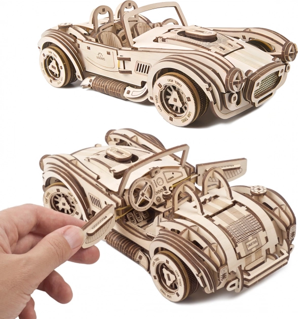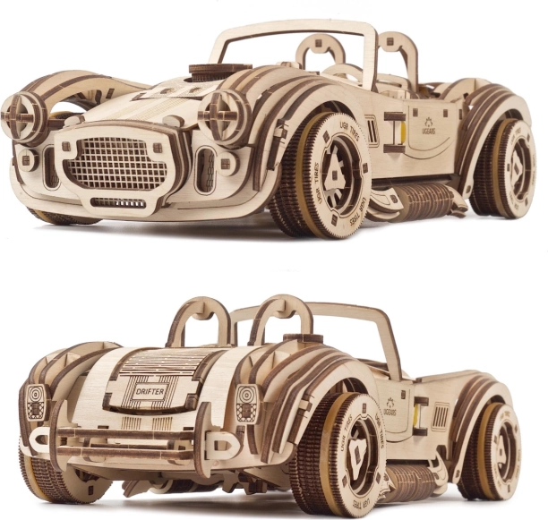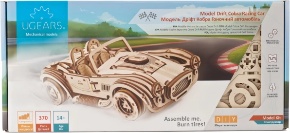 Sastavite kultni sportski automobil i uživajte u uzbuđenju vožnje s modelom UGEARS Drift Cobra. Ovaj precizno dizajniran drveni model s opružnim pogonom prelazi više od 8 metara, nudi otvarajuća vrata, poklopac motora i prtljažnik te se glatko prebacuje između ler-gasa i vožnje unatrag. Zahvaljujući mogućnosti obuvanja kotača gumenim trakama lako birate između driftanja i maksimalnog prianjanja. Sjajan izazov za graditelje od 14 godina i izniman poklon za ljubitelje mehanike i brzih automobila.