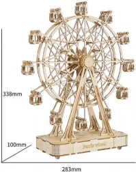 Ova elegantna glazbena kutija u obliku 3D slagalice vjerno prikazuje klasični panoramski kotač i nakon navijanja reproducira poznatu melodiju. Zahvaljujući kvalitetnom 18-tonskom mehanizmu zvuk je čist i ugodno glasan. Model dolazi nerazložen i sadrži detaljne upute za sastavljanje, tako da će u gradnji uživati i manje iskusni graditelji.