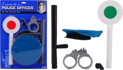 Ovaj policijski set razveselit će sve male čuvare reda. Sadrži platnenu kapu (pribl. 20 × 20 cm, šilt 23 cm) i plastične dodatke za igru zanimanja: policijsku STOP-pločicu (pribl. 33 cm), zviždaljku, lisice i pendrek (pribl. 29,5 cm). Prikladno od 3 godine.
