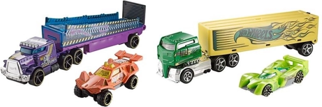 Otkrijte odlične Hot Wheels® kamione koji potiču djecu na kreativnu igru. Svaki set sadrži sportski autić, što jamči puno akcijske zabave. Možete birati među brojnim modelima, poput crnog kamiona s crvenim rubom i kromiranim cijevima koji dolazi s plavim trkaćim autom, ili zelenog kamiona sa srebrnom lubanjom i upečatljivim zelenim plamenovima. Svi modeli su osmišljeni kako bi pružili uzbudljivu igru i omogućili djeci razvijati maštu.