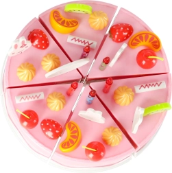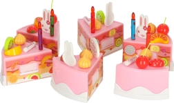 Torta se sastoji od 6 komada spojenih čičak-trakama. Djeca je mogu sigurno “rezati” plastičnim nožem i posluživati na tanjuriće.