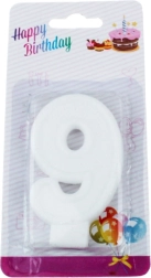 Elegantna rođendanska svijeća u obliku broja 9 s blagim sjajem savršen je odabir za poseban trenutak puhanja svjećica. Zahvaljujući čistom bijelom izgledu i šljokicama, izvrsno se uklapa u različite stilove torti i dekoracija.