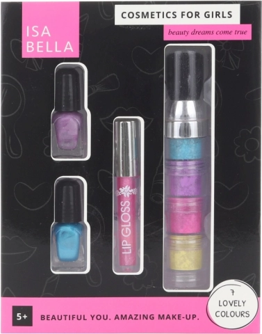 Stilizan dječji set za šminkanje za male modne znalce sadrži sjenila za oči, sjajilo za usne i 2 laka za nokte. Zahvaljujući kompaktnim dimenzijama 16 × 12,5 × 4 cm lako stane u ruksak i sjajan je za zabavno šminkanje od 5+ godina.