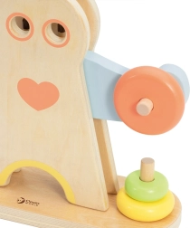 Igračka je izrađena od kvalitetnog prirodnog drva s glatkim rubovima i bojama na bazi vode. Pastelni elementi privlačni su djeci i ujedno bezvremenski.