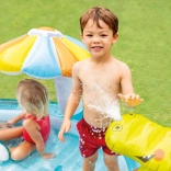 Bazen je opremljen s prskajućom fontanom i zaštitnim kišobranom koji pružaju zabavu i udobnost.