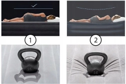 Integrirana nožna pumpa omogućuje lako napuhavanje bez struje. Madrac se može dodatno napuhati i običnom pumpom kroz ventil.