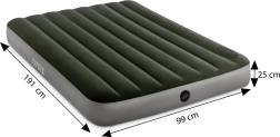 Nafukovací madrac INTEX spaja udobnost, izdržljivost i mobilnost. Baršunasto flokirana površina je ugodna na dodir i ne kliže, dok unutarnja konstrukcija s Dura-Beam Fiber ravnomjerno raspoređuje težinu tijela za miran san. Integrirana nožna pumpa omogućuje brzo napuhavanje bez potrebe za električnom energijom – idealno za kampiranje, posjete i kao pomoćni ležaj.