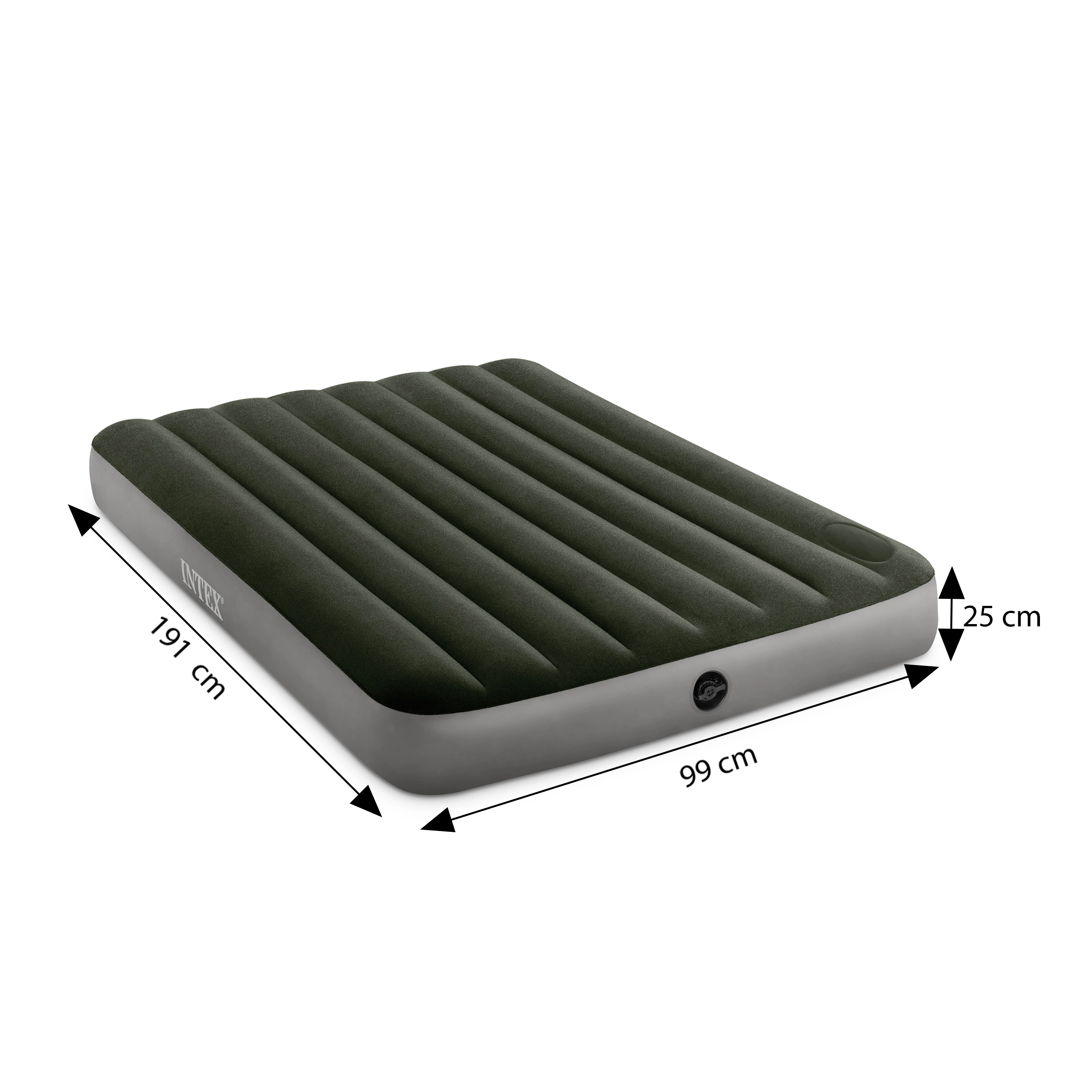 Dimenzije 191 × 99 × 25 cm pružaju udoban prostor za jednu odraslu osobu. Kvalitetni PVC se lako održava, a vodootporni flok povećava udobnost i trajnost. U pakiranju je i zakrpa za brze popravke.