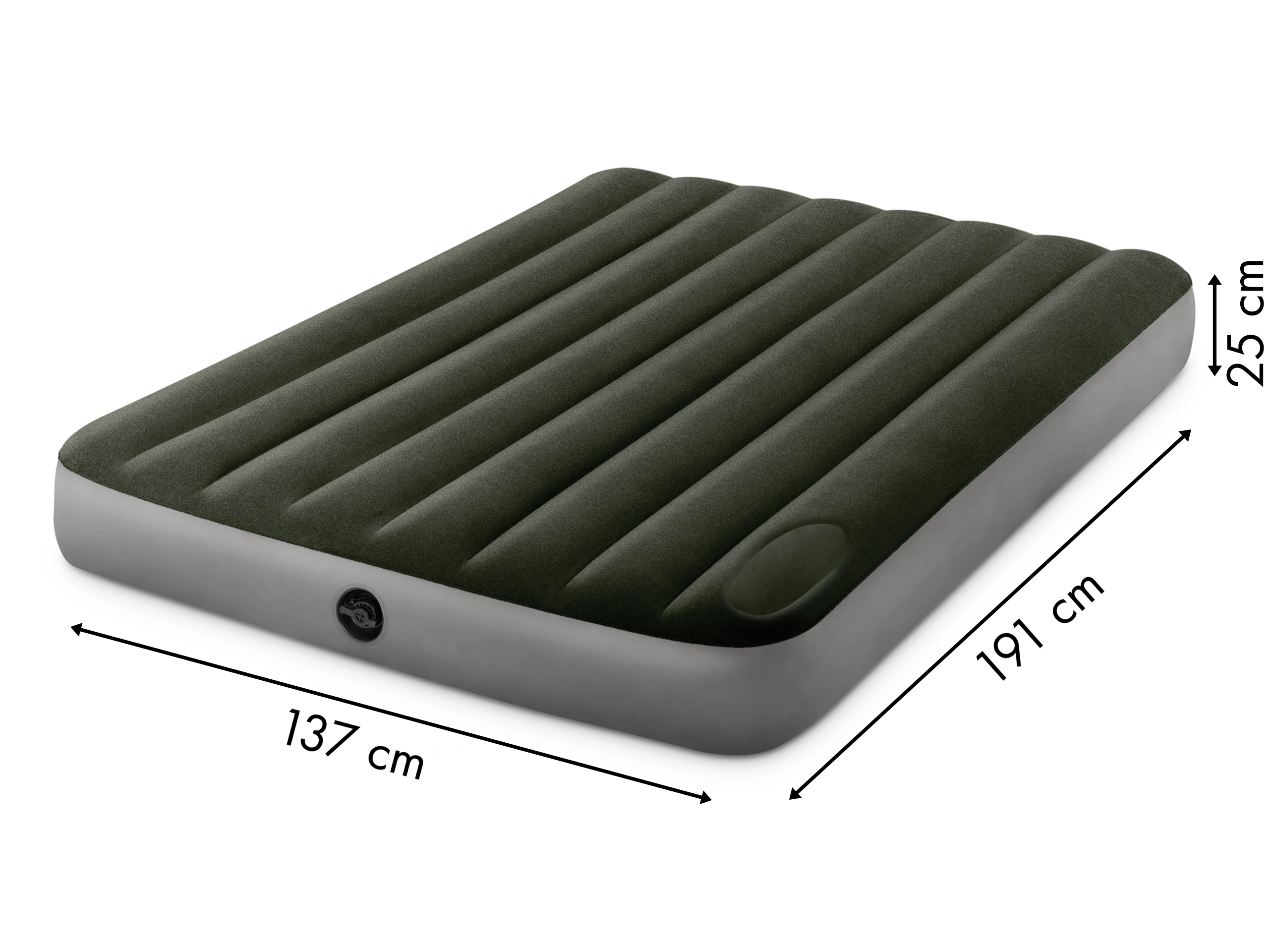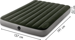 Nafukovatelni krevet dimenzija 1,37 m x 1,91 m x 25 cm. Maksimalna nosivost 272 kg. Vrijeme napuhavanja je 3,5 minute.